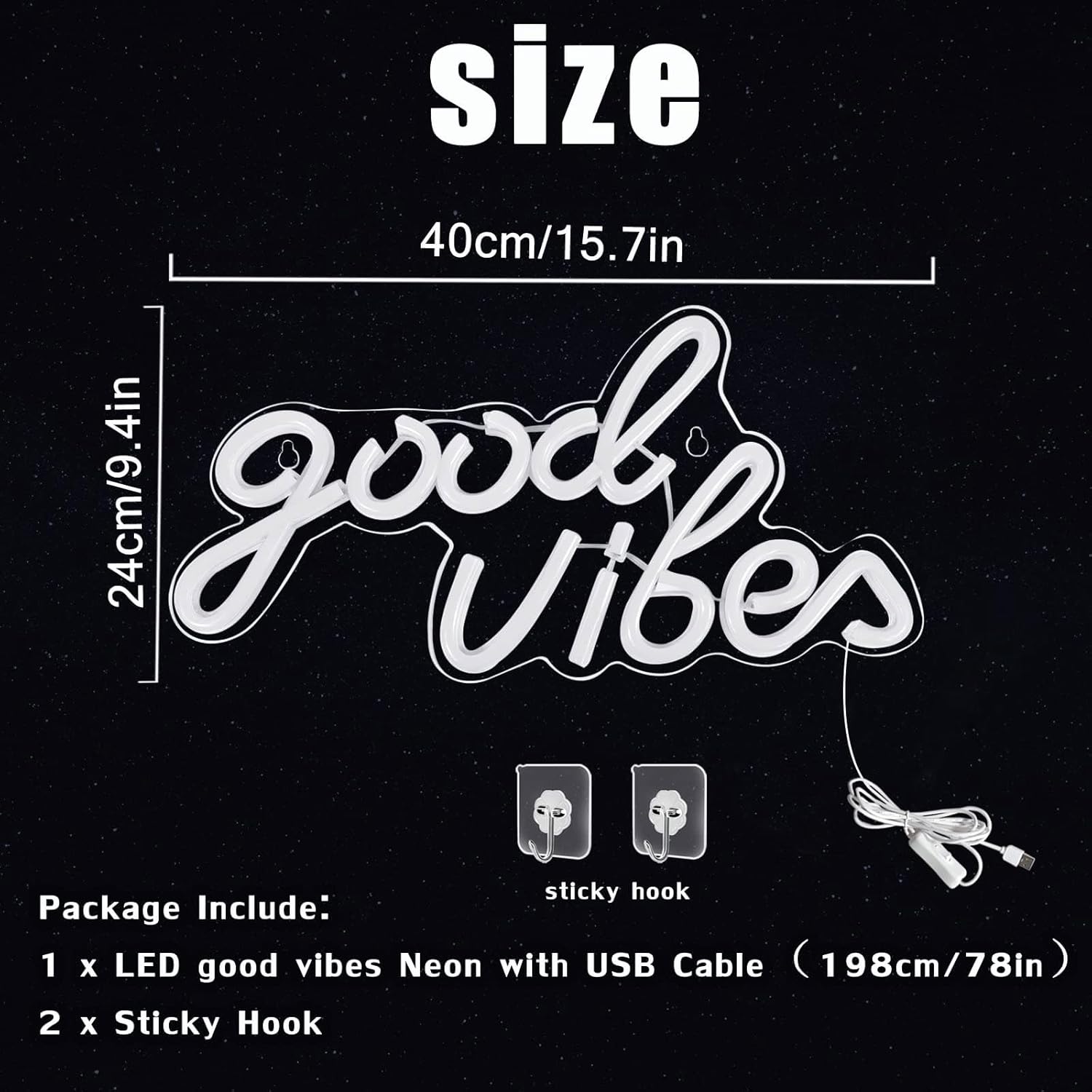 Good Vibes Neon Sign, LED Neon Signs for Wall Decor, White Neon Lights for Bedroom & Party