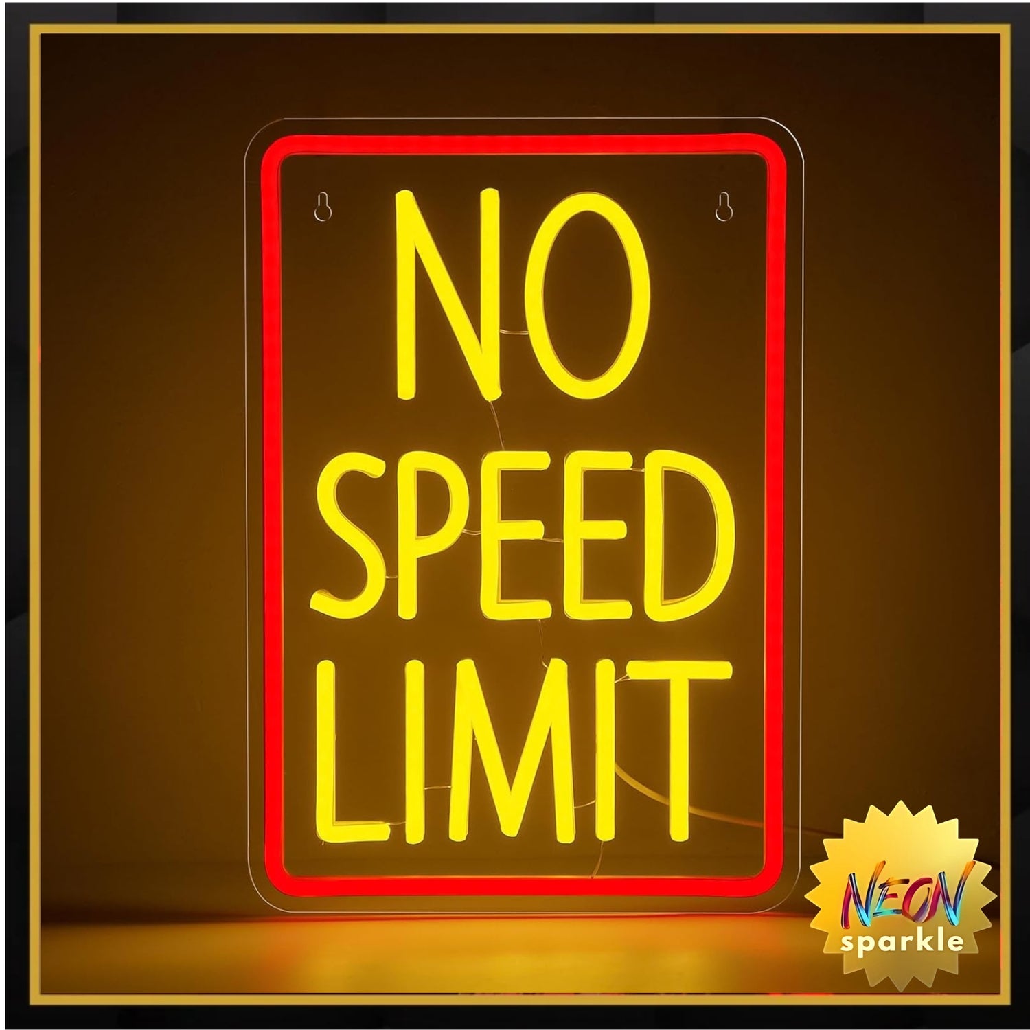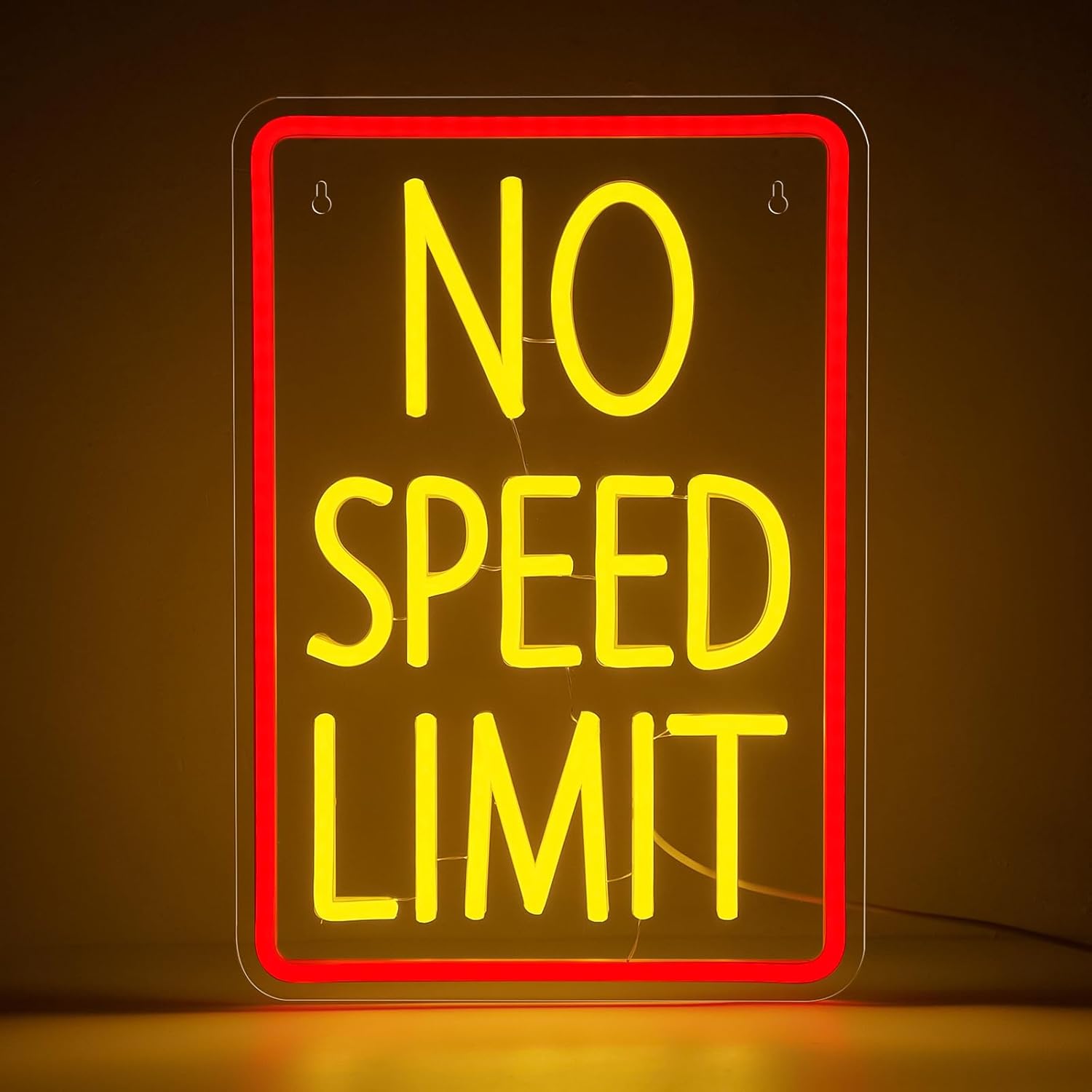 • No Speed Limit Neon Sign for Wall Decor: Bold red frame with vivid yellow LED letters, this No Speed Limit neon sign adds striking style to your bedroom decor, garage neon lights, bar wall signs, and game room wall art.