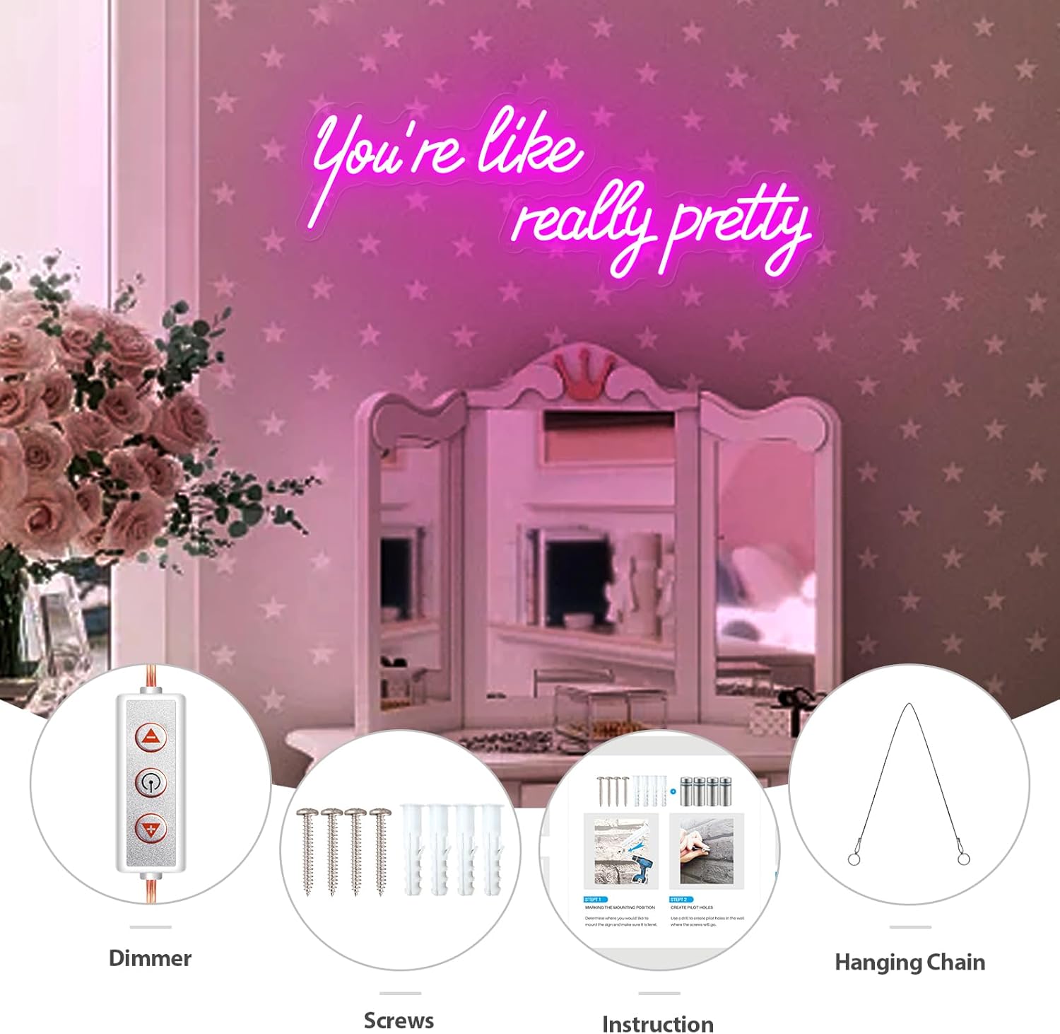 - 【Vibrant Lighting】You're Like Really Pretty Neon Sign is the perfect way to add vibrancy and color to your wedding, girls room, make-up room, home, business or special events. It's a great statement piece to make your big day unforgettable and joyful.