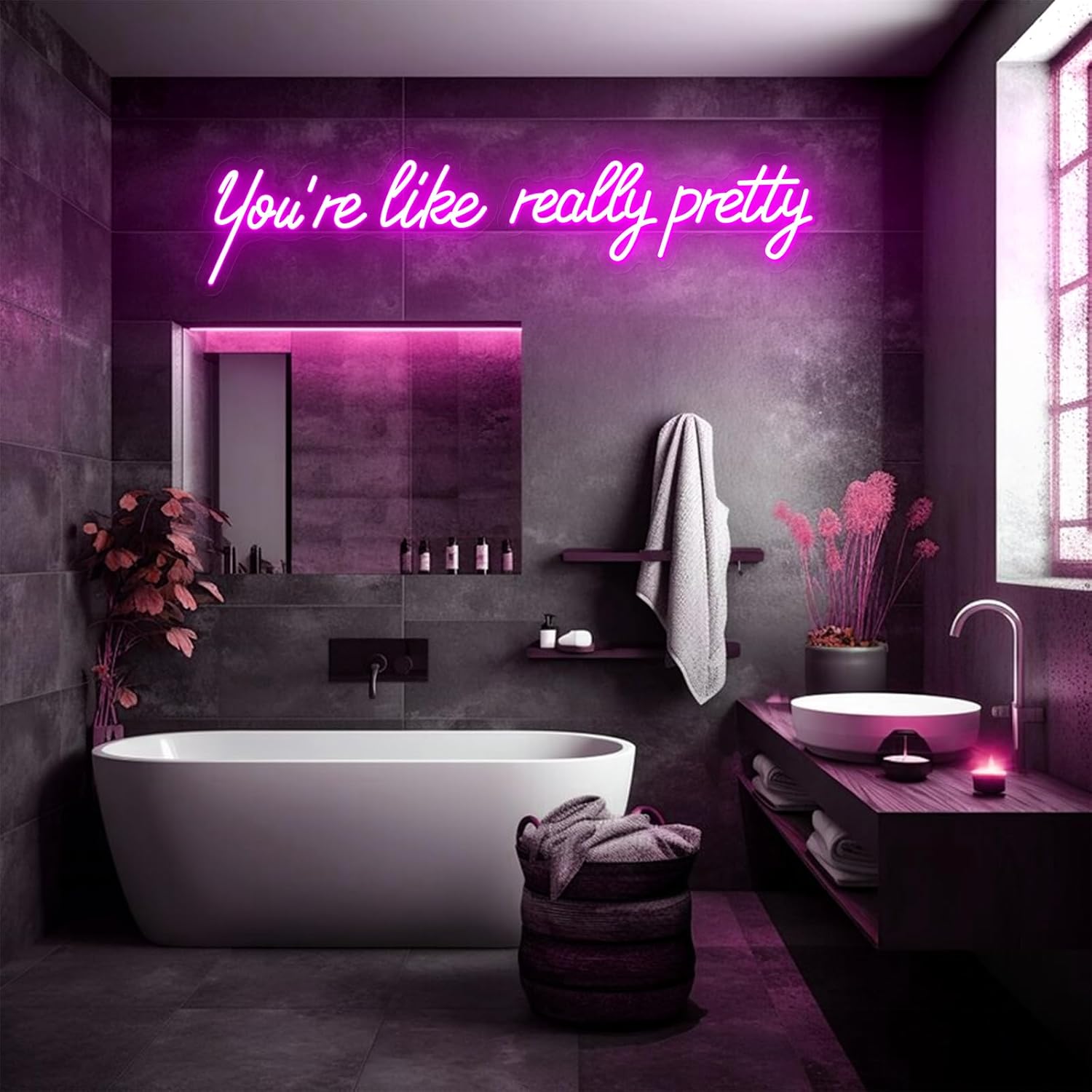 You're Like Really Pretty Neon Sign, Pink Handmade You're Like Really Pretty Led Neon