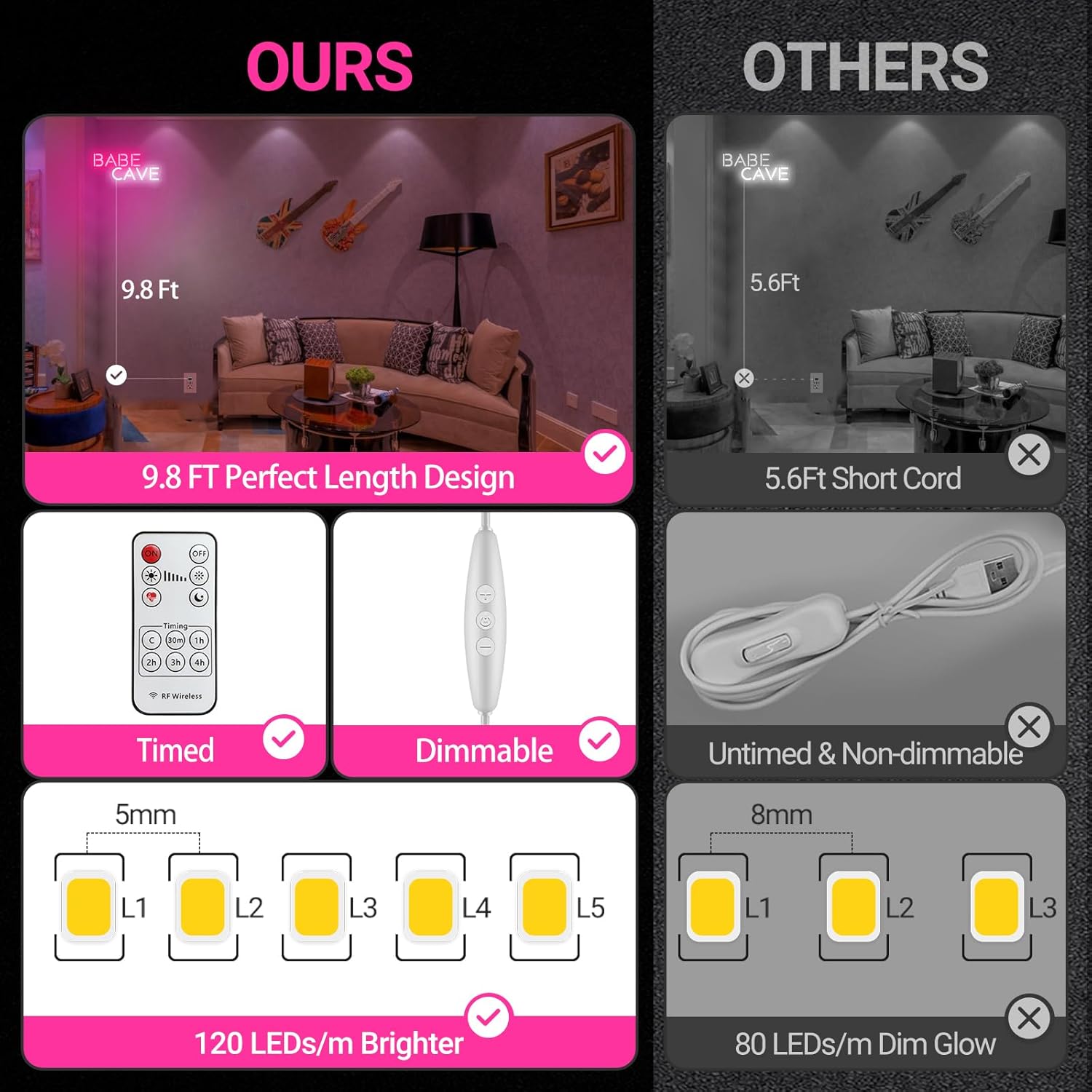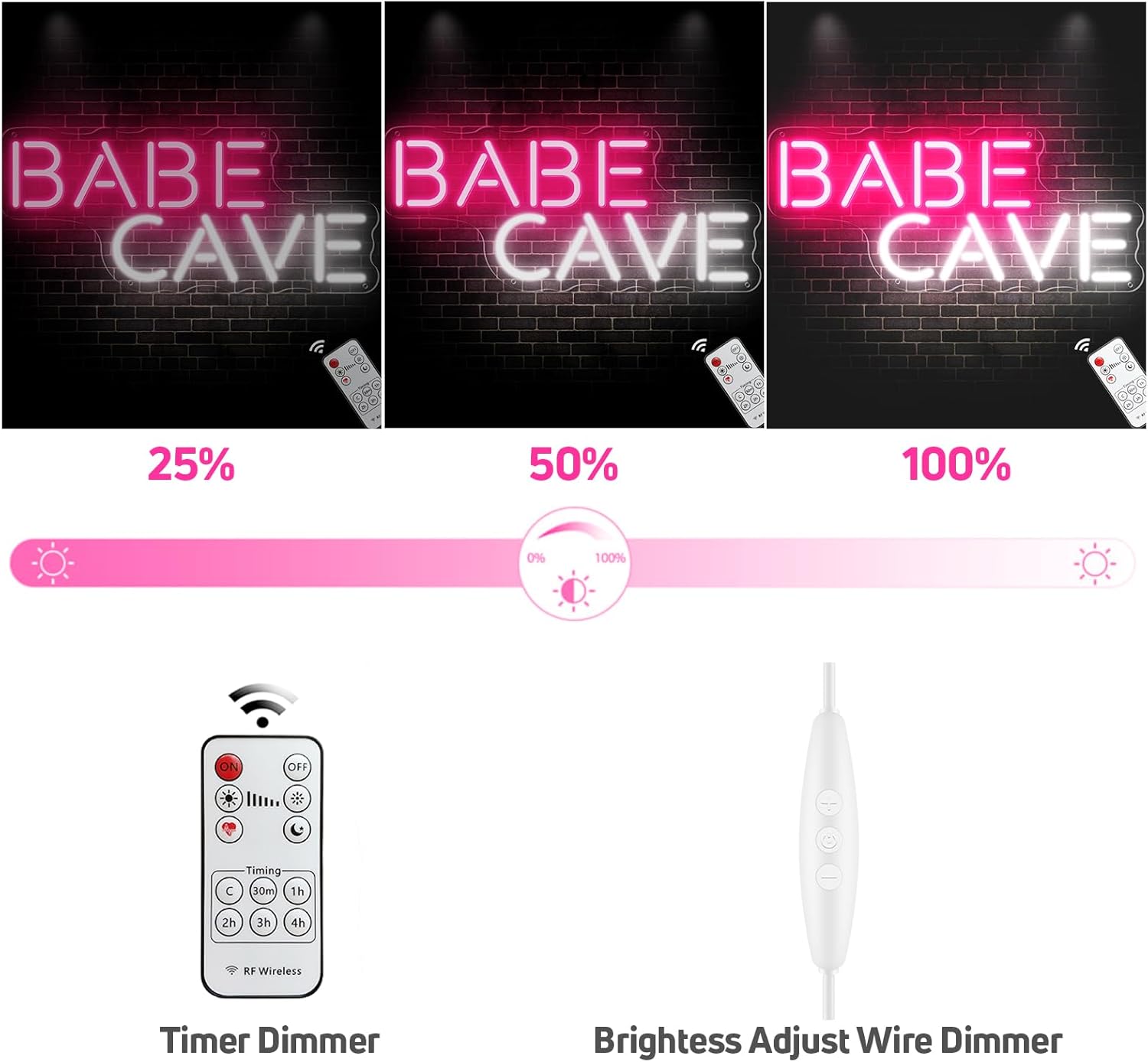 - No Hassle Use: Every Babe Cave led sign comes with pre-drilled holes and hanging chain, it's super easy to hang/mount on a wall or just place it on the table, desk, shelf as night light decor. Switch on with timer dimmer included to experience a magical ambiance, which allows you to adjust brightness and time freely. The memory function makes your lighting settings the same as the last time you used it.:)