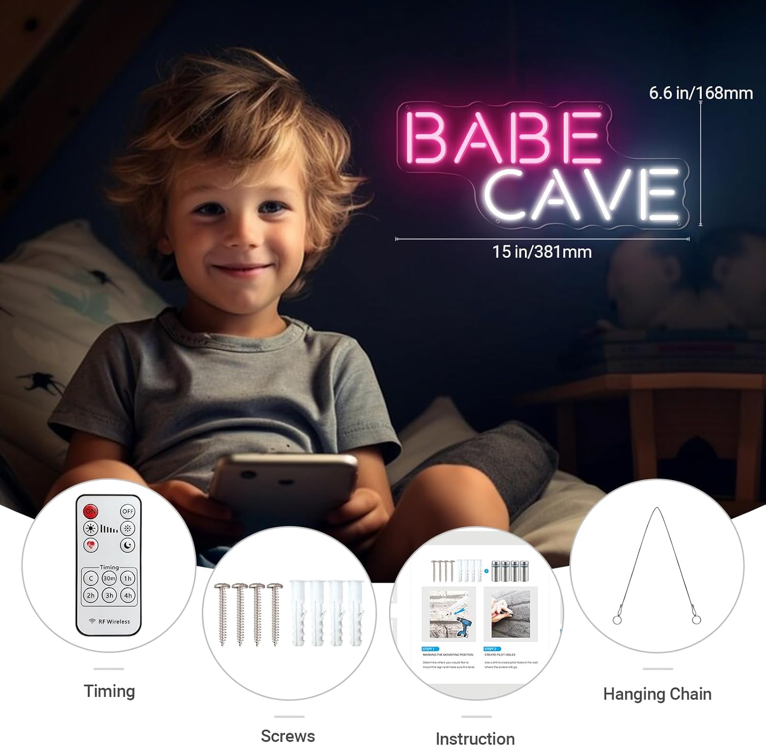 - Vibrant Lighting: KiMineon Babe Cave neon sign is the perfect way to add vibrancy and color to your baby’s room, party, birthday, bedroom or special events. It's a great statement piece to make your big day unforgettable and joyful.