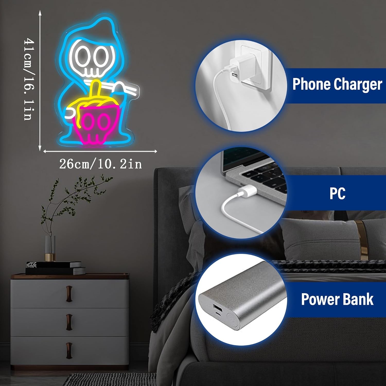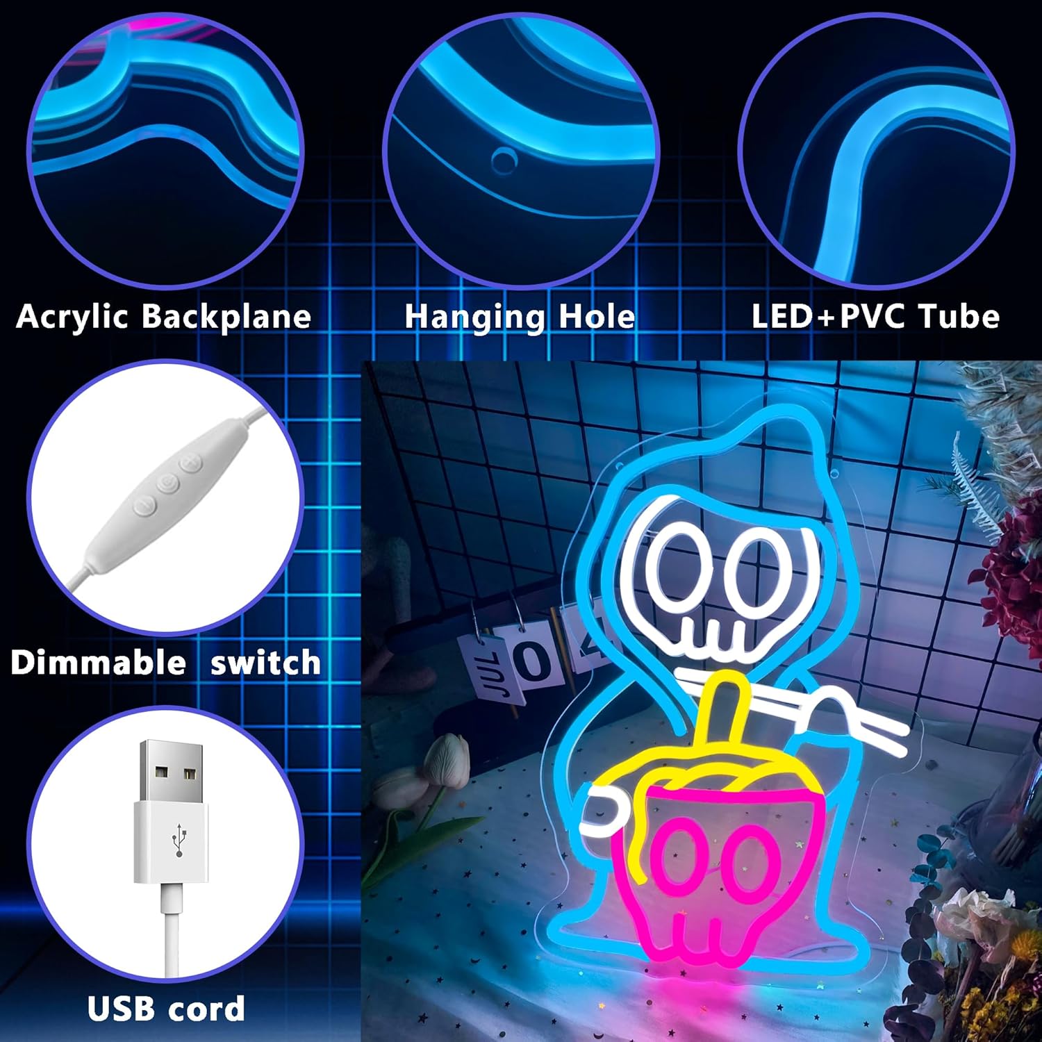 Grim Reaper Ramen Noodles Neon Signs for Wall Decor,Dimmable Japanese – Neon Sparkle