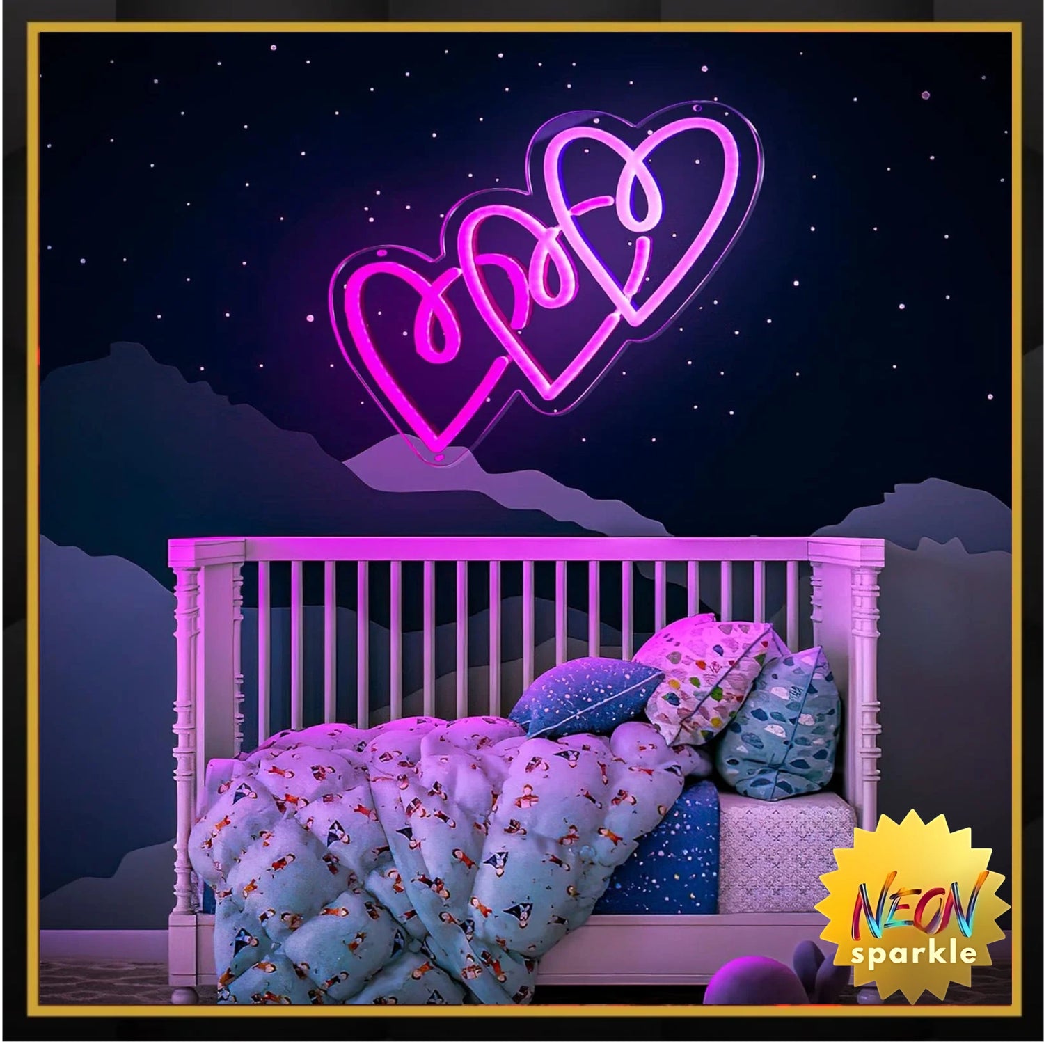 Neon Light Three Heart Light Sign for Girl Room/Party Decor,Birthday or Holiday Gifts for Children, Your Loved Ones, Parents and Friends (Neon Light Heart)