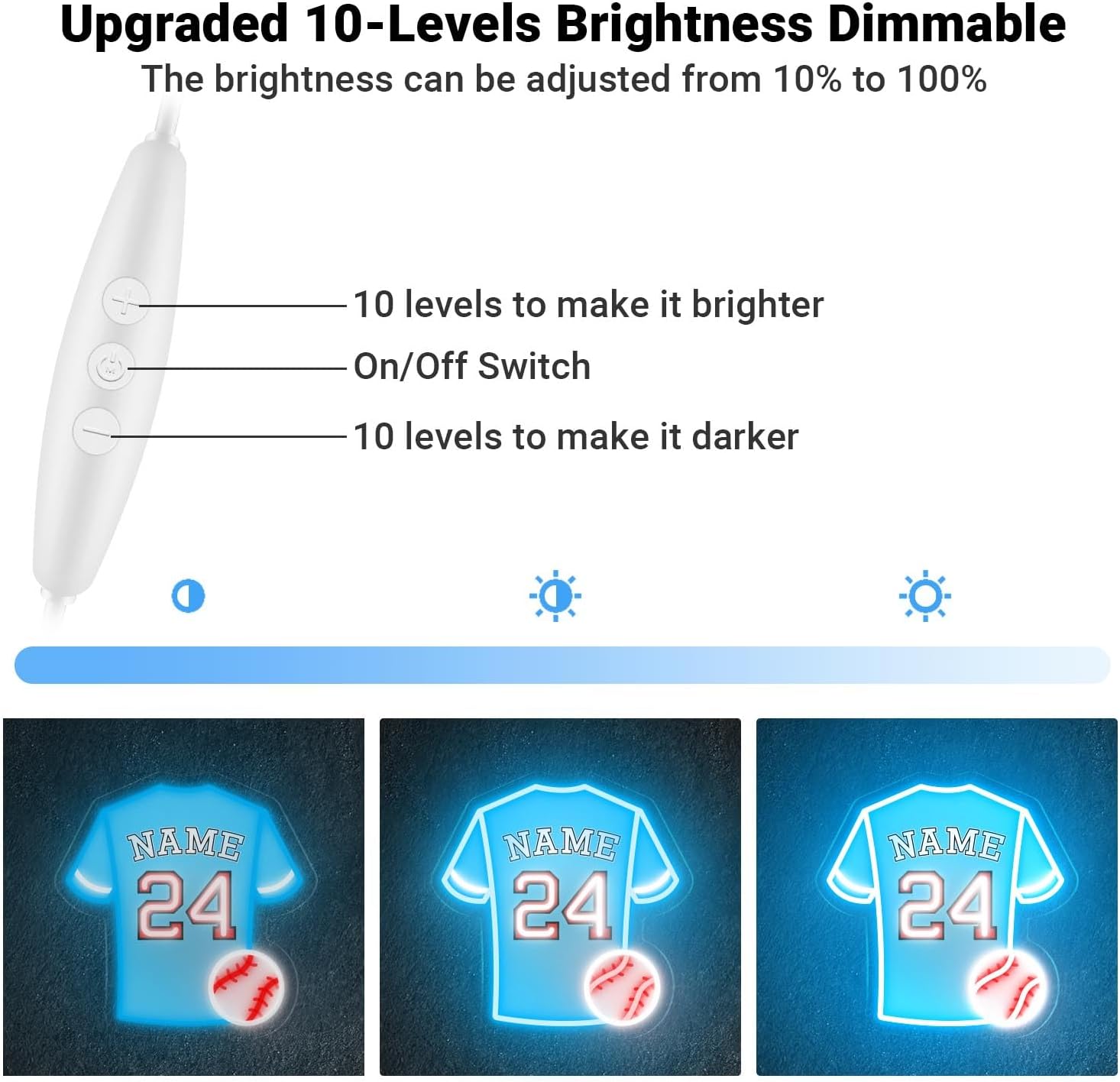 • 💯【Adjustable Luminosity at Your Fingertips】Dial in the perfect light! Easily modify the brightness of our LED neon lights. From a soft, twilight glow for a quiet evening of baseball stats study to a bright, stadium-worthy shine for a World Softball Series watch party, you're always in control.