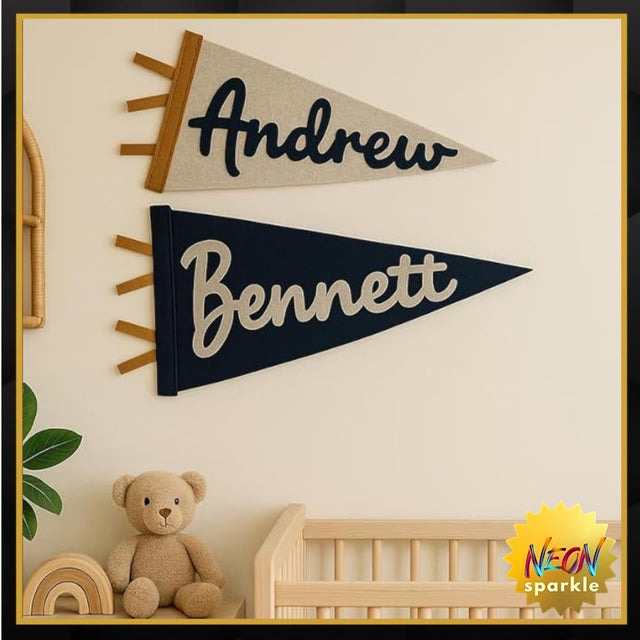 Personalized Name Pennant Flag, Handmade Custom Felt Nursery Pennant f – Neon Sparkle