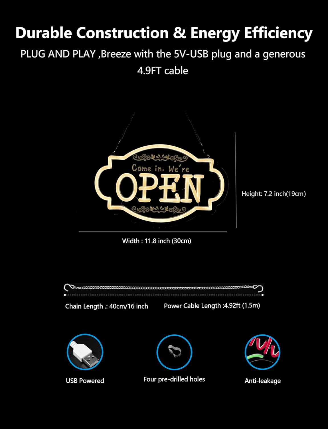 - 【Theme Decor】Add a ray of sunshine to your storefront! The Retro Sun White Open Neon Sign blends vintage style with modern LED technology. Its eye-catching sun design and bright white glow ensure your "Open" message is seen with unique character, day or night.