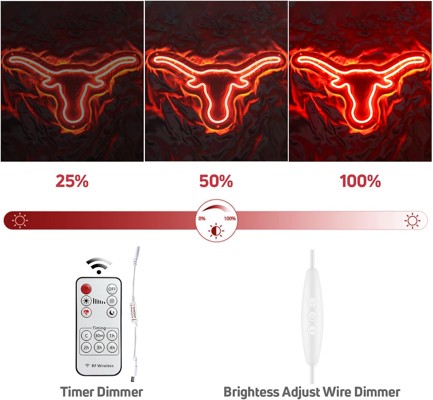 Texas Bull Neon Sign for Wall, Remote Dimmer Red Western Texas Bull Sk – Neon Sparkle