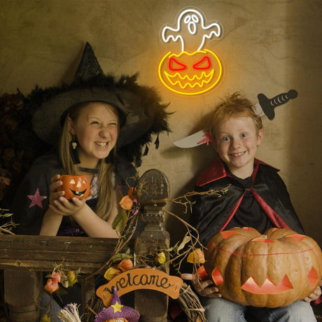 Halloween Ghost Pumpkin Neon Sign,Ghost Face Neon Light Spooky Pumpkin Neon Light Up Signs