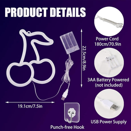 Cherry Neon Sign, Red Green Cherries Neon Lights, Cherry Neon Signs for Wall Decor,