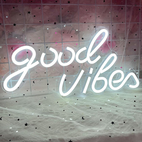 Good Vibes Neon Sign, LED Neon Signs for Wall Decor, White Neon Lights for Bedroom & Party