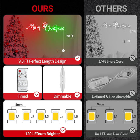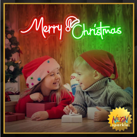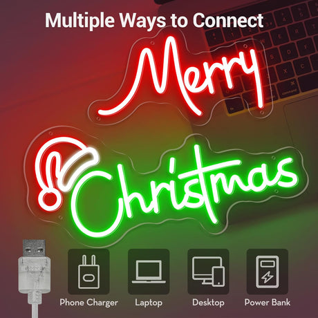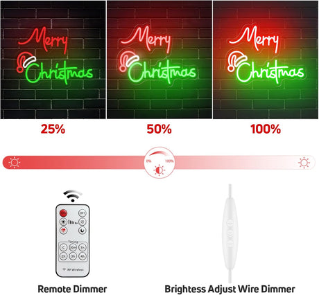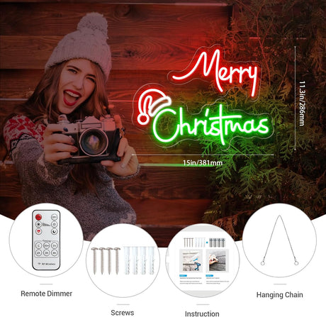 Large 25 Inch Merry Christmas Neon Signs, Red Green Led Neon Light Sign for Party Gift