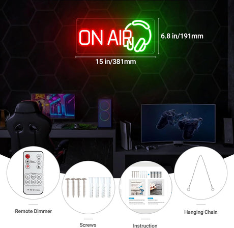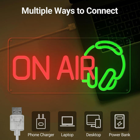 Red Green Recording Headset LED Neon Light for Live Room, USB Powered for Twitch
