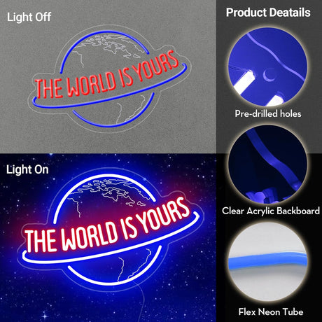 Remote Dimmer Planet LED Neon Light Lamp for Wall Decor, USB Power for Man Cave Home Bar Bistro Club