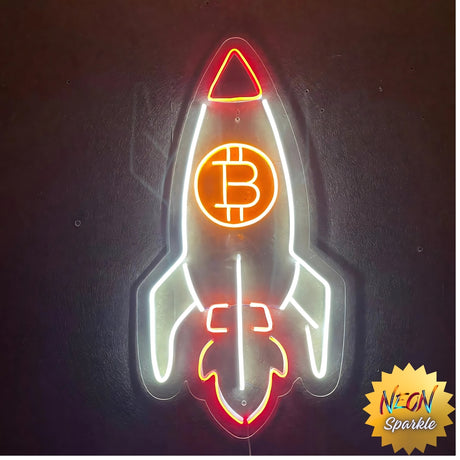 Bitcoin Rocket Neon Sign by Neon Sparkle - LED Light for Crypto Decor