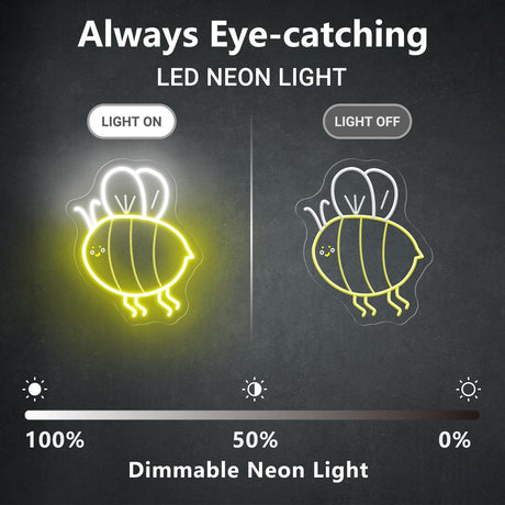 Honeybee Neon Light Wall Decor - LED Room Decor for Bedroom, Kids Room, Living Room