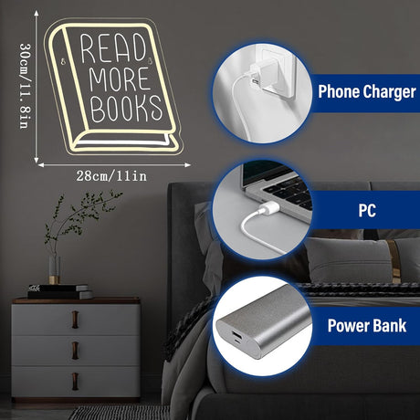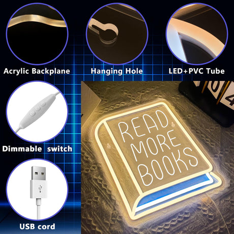 Read More Books Neon Signs for Wall Decor, Dimmable Book Classroom