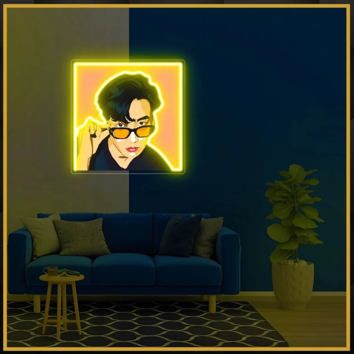 Illuminate your space with the dazzling style of J-Hope! This stunning UV neon sign captures the BTS superstar holding his iconic sunglasses, making it a must-have for any ARMY. The vibrant colors and captivating design add a lively touch to your room, perfect for parties, bedrooms, or studios. Let J-Hope's infectious energy light up your life and create a fun atmosphere wherever you display it!