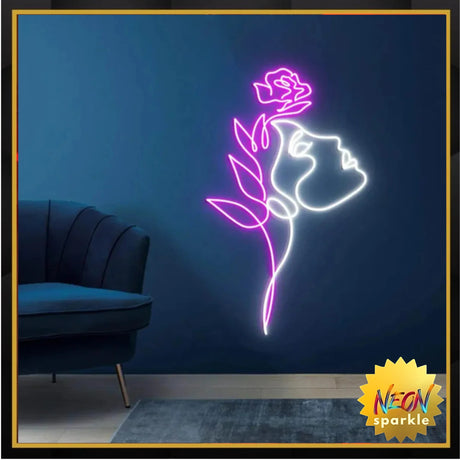 Face with Flower Beautiful Art Luxury Decor Neon Light