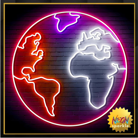 World Neon Sign - LED Globe Wall Light for Home & Office by Neon Sparkle