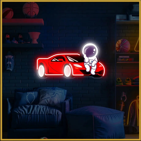 Astronaut with Car UV Neon Sign
